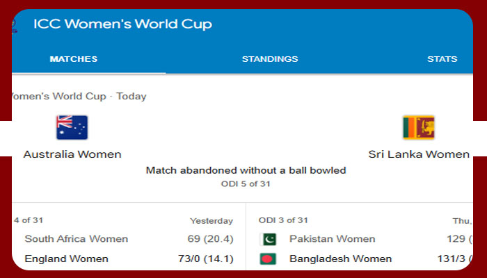 آئی سی سی ویمنز ورلڈ کپ،سری لنکا اور آسڑیلیا کا میچ ڈرا،1-1پوائنٹ مل گیا