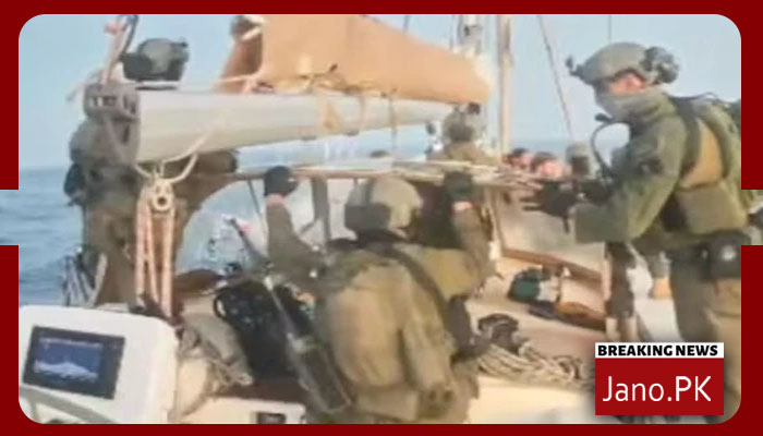 غزہ:اسرائیل نے بربریت کی ساری حدیں پار کردیں،صمودفلوٹیلاکے500کارکن جکڑ دیئے۔اسرائیلی فورسز نے امدادی سامان سے لدے جہازوں کے قافلے کی آخری کشتی کو بھی غزہ میں داخل ہونے کی کوشش میں روک لیا۔عالمی خبر ایجنسی  کے مطابق”مارینیٹ”نامی اس کشتی پر پولینڈ کا پرچم لہرا رہا تھا اور اس پر6رضاکار سوار تھے جن کا تعلق جرمنی، ترکی، عمان اور آسٹریلیا سے ہے۔یہ کشتی غزہ کے ساحل سے صرف 42.5 ناٹیکل میل کی دوری پر تھی کہ اسرائیلی بحریہ نے اسے روک کر اشدود کی بندرگاہ منتقل کر دیا اور تمام رضاکاروں کو بھی حراست میں لے لیا۔