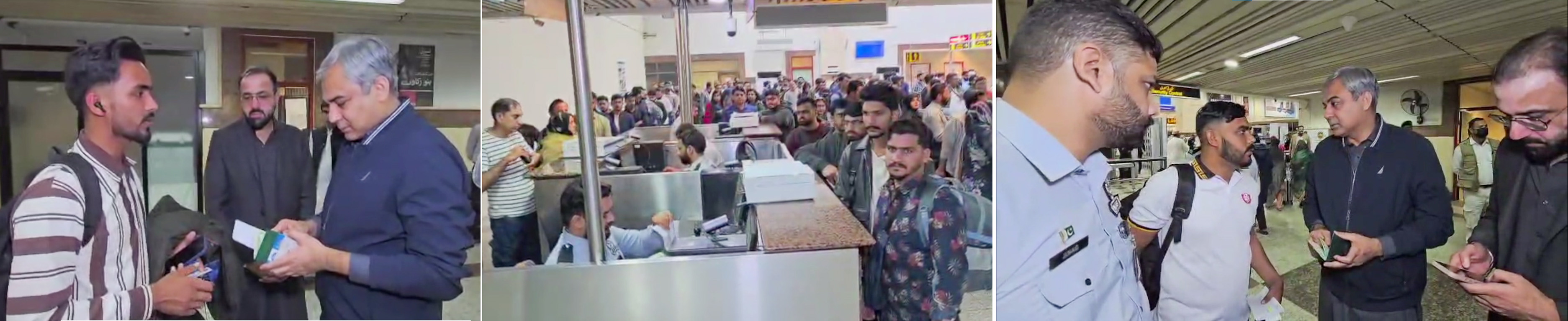وزیر داخلہ محسن نقوی نے امیگریشن کاؤنٹرز پر رش اور سست روی دیکھ کر شدید ناراضگی کا اظہار کیا اور عملے کو جلد پراسیس مکمل کرنے کی ہدایت کی، دونوں وزراء نے بیرونِ ملک جانے والے مسافروں سے بات چیت کی اور امیگریشن پراسیس کے بارے پوچھا۔