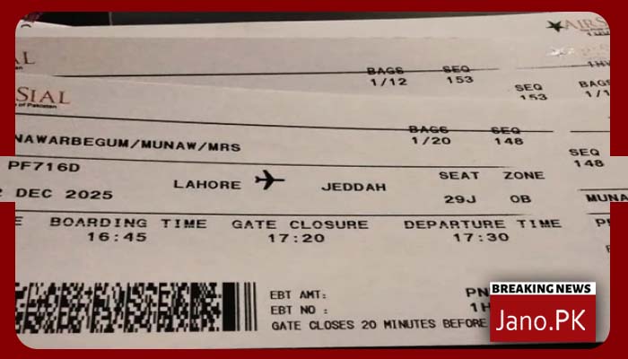 لاہور سے جدہ جانے والی پرواز کے مسافروں کو بورڈنگ کارڈ بھی جاری کر دیے گئے۔ بورڈ ڈنگ کارڈ لیکر مسافر جہاز کے انتظار میں کھڑے ہیں۔ مسافروں کا کہنا ہے کہ تین روز سے کہتے ہیں آج جائے گی کل جائے گی۔
