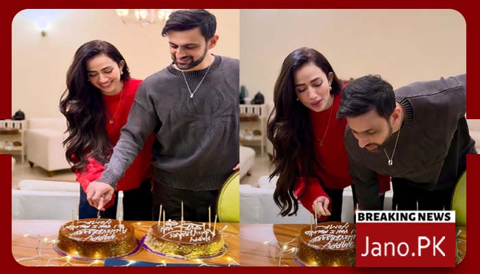 اداکارہ ثنا جاوید اور پاکستان کرکٹ ٹیم کے سابق کپتان شعیب ملک کی دوسری شادی کی دوسری سالگرہ پر دونوں میاں بیوی نے کیک کاٹا۔
