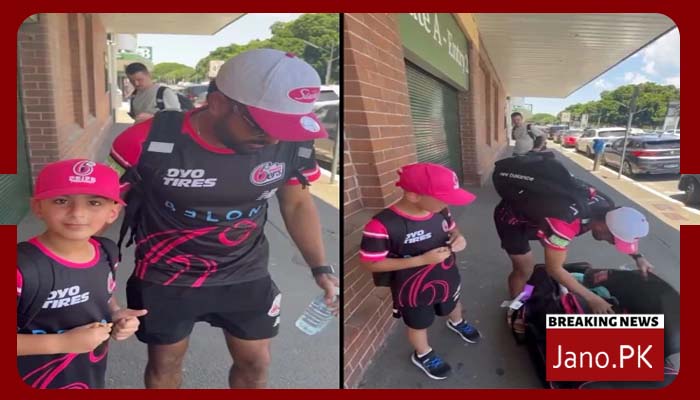 بابر اعظم کے پاس ان کا ایک ننھا فین تصویر کھنچوانے آتا ہے تو بابر اس کو تحفے میں اپنے بیٹنگ گلوز دے دیتے ہیں۔