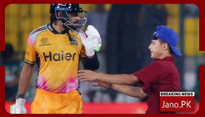کراچی(جانوڈاٹ پی کے)پشاور زلمی کے کپتان بابر اعظم کےچار مداح مختلف مواقع پر نیشنل اسٹیڈیم کے گراؤنڈ میں داخل ہو گئے جس کے نتیجے میں سیکیورٹی اہلکاروں کی دوڑیں لگ گئیں۔