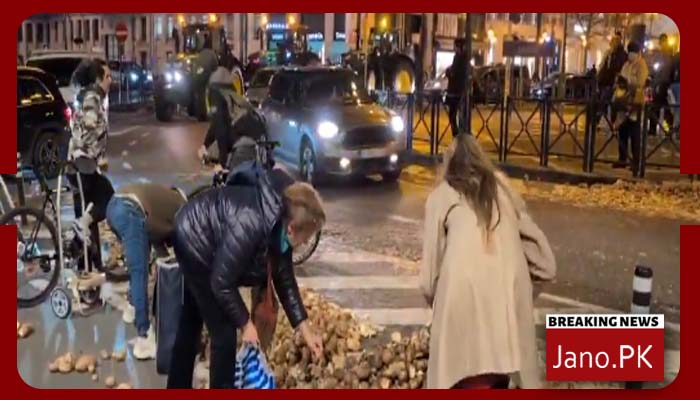 برسلز میں کسانوں کا احتجاج، سڑکیں آلوؤں سے بھر گئیں، شہریوں نے آلو جمع کر لیے