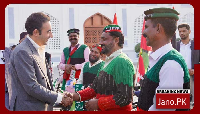لاڑکانہ (رپورٹ: احسان جونیجو/نمائندہ جانو ڈاٹ پی کے) چیئرمین پیپلز پارٹی بلاول بھٹو زرداری کی گڑھی خدا بخش بھٹو میں کارکنوں سے ملاقات کی، ملاقات کرنے والے کارکن پیدل چل کر اور سائیکلوں پر سوار ہوکر شہید بے نظیر بھٹو کی برسی پر پہنچے تھے جن میں پنجاب کے علاقے راجن پور اور سندھ کے ضلع سانگھڑ سے تعلق رکھنے والے کارکن شامل تھے،  بلاول بھٹو سے سیہون شریف سے پیدل آنے والے کارکنوں نے بھی ملاقات کی، بلاول بھٹو نے دوران ملاقات کارکنوں کے جذبے کو سراہتے ہوئے کہا کہ پیپلزپارٹی کے جیالے شہید بینظیر بھٹو سے والہانہ عقیدت رکھتے ہیں، مجھے اور پارٹی کو ایسے کارکنوں پر فخر ہے، بلاول بھٹو نے کارکنوں سے ہاتھ ملاکر خوشی کا اظہار بھی کیا.
