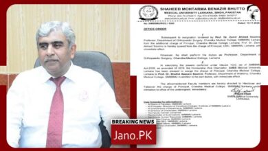 چانڈکا میڈیکل کالج لاڑکانہ کے پرنسپل پروفیسر ضمیر احمد سومرو کا استعفیٰ منظور