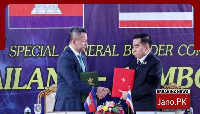 بینکاک(جانو ڈاٹ پی کے)تھائی لینڈ اور کمبوڈیا کے درمیان طے پانے والے جنگ بندی معاہدے کی نگرانی آسیان کے نمائندے کریں گے۔کمبوڈیا اور تھائی لینڈ جنگ بندی معاہدے کی نگرانی آسیان کرے گی۔تھائی لینڈ اور کمبوڈیا کے وزرائے دفاع نے مشترکہ سرحد پر ہونے والی تقریب میں جنگ بندی معاہدے پر دستخط کردیئے۔عالمی خبر رساں ادارے کے مطابق جنگ بندی معاہدے پر عملدرآمد کی نگرانی کے لیے آسیان (ASEAN) کے مبصرین تعینات کیے جائیں گے۔علاوہ ازیں کسی بھی ممکنہ مسئلے کے حل کے لیے دونوں ممالک کے درمیان براہِ راست رابطہ بھی برقرار رہے گا۔فوری طور پر نافذ العمل جنگ بندی معاہدے کے تحت دونوں ممالک ہر قسم کے ہتھیاروں کے استعمال سے باز رہیں گے۔گرفتار 18 کمبوڈیائی فوجیوں کو جنگ بندی برقرار رہنے کی صورت میں 72 گھنٹوں کے اندر واپس کیا جائے گا۔دونوں ممالک اپنی موجودہ فوجی تعیناتی برقرار رکھیں گے تاہم کسی قسم کی مزید فوجی نقل و حرکت نہیں کی جائے گی۔اشتعال انگیز اقدامات اور غلط معلومات کے پھیلاؤ سے گریز کیا جائے گا۔ شہریوں، شہری تنصیبات، انفراسٹرکچر اور فوجی اہداف پر بھی حملے بند کر دیئے جائیں گے۔