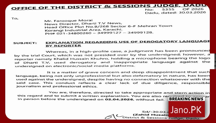 دادو: ڈسٹرکٹ جج کا ہائی پروفائل قتل کیس کے فیصلے پر عدالتی تنقیدی مہم چلانے والوں کیخلاف مقدمہ درج کرنے کا حکم