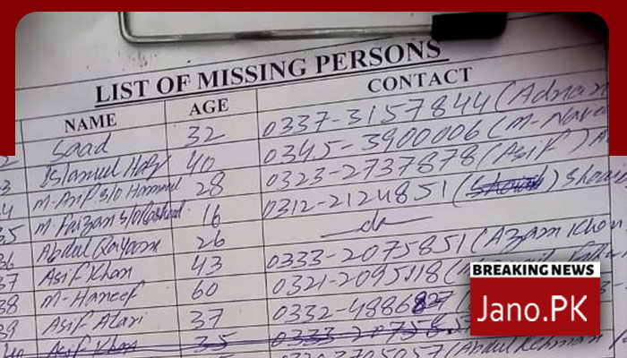 لاپتا افراد کے ناموں کی فہرست سامنے آگئی