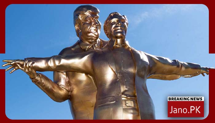 واشنگٹن(جانوڈاٹ پی کے)امریکا کے دارالحکومت واشنگٹن ڈی سی میں امریکی کانگریس کی عمارت کے قریب ایک متنازع مجسمہ نصب کیا گیا ہے جس میں امریکی صدر ڈونلڈ ٹرمپ اور بدنام زمانہ سرمایہ کار جنسی مجرم جیفری ایپسٹین کو ٹائٹینک فلم کے مشہور منظر کی طرح دکھایا گیا ہے۔