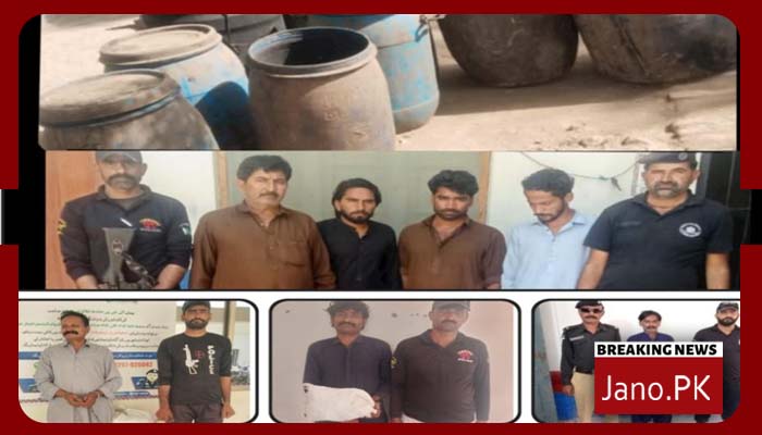ماتلی (محمد راحیم گدی/جانا ڈاٹ کام کی کے)ضلع بدین میں پولیس نے منشیات فروشوں کے گرد گھیرا مزید تنگ کرتے ہوئے مختلف کارروائیوں کے دوران بھاری مقدار میں 568 لٹر دیسی شراب، 2770 سفینہ گٹکہ ساشے اور 32700 روپے نقد رقم برآمد کرلی جبکہ اے پلس کیٹیگری کے 5 خطرناک منشیات فروشوں سمیت مجموعی طور پر 7 ملزمان کو گرفتار کرلیا گیا، پولیس کی مربوط حکمت عملی کے تحت مختلف تھانوں کی حدود میں بیک وقت کارروائیاں عمل میں لائی گئیں۔ تفصیلات کے مطابق تھانہ راجو خانانی پولیس نے خفیہ اطلاع پر دیسی شراب کی بٹھی پر کامیاب چھاپہ مار کر بڑی مقدار میں شراب اور نقدی برآمد کی اور اے پلس کیٹیگری کے منشیات فروش سلطان خاصخیلی، منٹھار خاصخیلی، نفیس خاصخیلی اور حاجی خاصخیلی کو گرفتار کرلیا، گرفتار مرکزی ملزم سلطان خاصخیلی کا طویل کرمنل ریکارڈ بھی سامنے آیا ہے جس کے خلاف 1991، 2004، 2016، 2023 اور 2026 میں مختلف نوعیت کے مقدمات درج ہیں۔ ادھر تھانہ بدین پولیس نے کارروائی کرتے ہوئے اے پلس کیٹیگری کے گٹکہ فروش ابو عرف اللہ ڈنو ملاح کو گرفتار کر کے اس کے قبضے سے 2000 دیسی گٹکے برآمد کیے، جبکہ تھانہ کڈھن پولیس نے ملزم رجب علی نوتیار سے 550 سفینہ گٹکہ ساشے اور تھانہ نندو پولیس نے غلام مصطفیٰ عرف مستی ملاح سے 220 دیسی گٹکے برآمد کر کے انہیں گرفتار کرلیا۔ پولیس کے مطابق گرفتار ملزمان کے خلاف متعلقہ دفعات کے تحت مقدمات درج کر کے مزید تفتیش کا آغاز کردیا گیا ہے جبکہ ضلع بھر میں منشیات فروشوں کے خلاف بلاامتیاز کارروائیاں مزید تیز کرنے کا عندیہ دیا گیا ہے۔#
