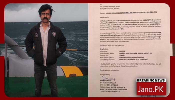 خلیج فارس میں جہاز پر پھنسے پاکستانی ورکرکے والد نے حکومت پاکستان سے مددکی اپیل کردی