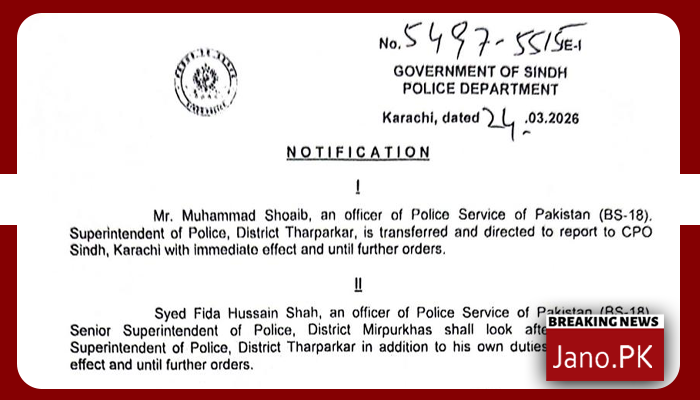 جميل سومرو کا سمترا سے رابطہ، ایس ایس پی تھرپارکر تبدیل، ایس ایچ او اور اہلکار معطل،تحقیقات کا حکم
