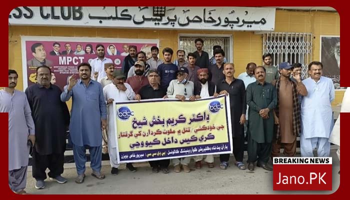 میرپورخاص (شاھد میمن) مٹھی سول اسپتال کے ڈاکٹر کریم شیخ کی موت کے واقعے کے خلاف میرپورخاص میں سول سوسائٹی کی جانب سے پریس کلب کے سامنے احتجاجی مظاہرہ کیا گیا مظاہرے کی قیادت واجد لغاری، لالا اظہر پٹھان، نور محمد مری اور جمن لغاری نے کی اس موقع پر مظاہرین سے خطاب کرتے ہوئے رہنماؤں کا کہنا تھا کہ مٹھی سول اسپتال کے ڈاکٹر کریم شیخ کی موت خودکشی نہیں بلکہ قتل ہے کیونکہ انہیں مسلسل ذہنی اذیت اور دباؤ کا سامنا کرنا پڑا جس کے باعث وہ اپنی جان لینے پر مجبور ہوئے انہوں نے کہا کہ ڈاکٹر کریم شیخ اپنے وائس نوٹ اور خط میں پہلے ہی ذمہ دار افراد کے بارے میں انکشاف کر چکے تھے لہٰذا ان کے ورثاء کی مدعیت میں مقدمہ درج کرکے اس واقعے میں ملوث تمام افراد کو گرفتار کیا جائے مظاہرین کا مزید کہنا تھا کہ سندھ کے سرکاری ادارے مافیاؤں اور بیوروکریسی کے زیرِ اثر آ چکے ہیں جہاں ایماندار اور محنتی افراد کی تذلیل کی جاتی ہے انہوں نے مطالبہ کیا کہ واقعے کی شفاف تحقیقات کرکے ذمہ داروں کو سخت سزا دی جائے۔
