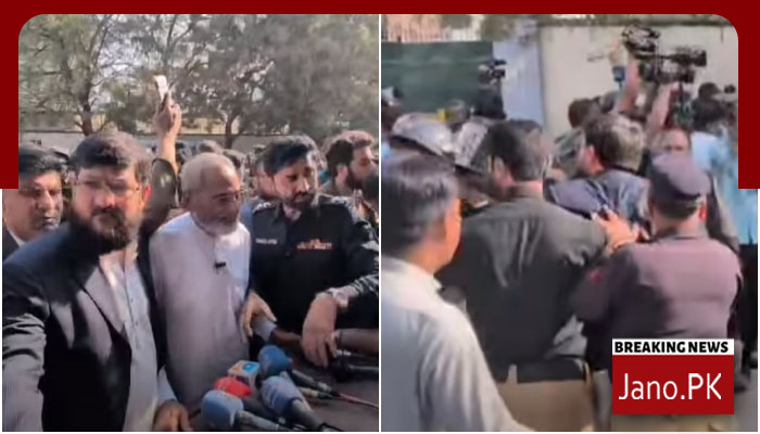 کراچی(جانو ڈاٹ پی کے)پولیس نے جماعت اسلامی کے رکن سندھ اسمبلی محمد فارق سمیت متعدد افراد کو حراست میں لے لیا۔جماعت اسلامی کے رکن اسمبلی اور کارکنان کو الیکشن کمیشن کے دفتر کے باہر پریس کانفرنس کے دوران کیا گیا، پولیس نے پریس کا نفرنس میں موجود جماعت اسلامی کے کارکنان کو منشتر کردیا۔اس سے قبل جماعت اسلامی کے رکن سندھ اسمبلی محمد فاروق نے میڈیا سے گفتگو کرتے ہوئے کہا تھا کہ ملک بھر میں ہونے والے ظلم و ستم کو عیاں کرنے کے لیے جماعت اسلامی یہاں موجود ہے۔محمد فاروق نے کہا کہ یہ بادشاہ سلامت کا گھر نہیں، پریس کانفرنس ہوگی، پریس کانفرنس کرنے کی اجازت نہیں دی گئی تو احتجاج ہوگا۔محمد فاروق کا کہنا تھا کہ 14 فروری کو سندھ اسمبلی کے باہر دھرنے کو روکنےکی کوشش کی جا رہی ہے، وہ دھرنا ہوگا اور یہ پریس کانفرنس بھی ہوگی