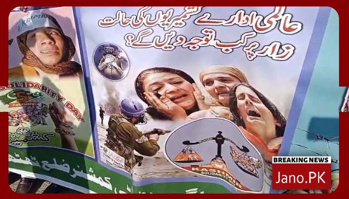 شرکاء نے ہاتھوں میں پلے کارڈز اور بینرز اٹھا رکھے تھے، جن پر مظلوم کشمیری عوام پر بھارتی مظالم کی بھرپور مذمت درج تھی، جبکہ “کشمیر بنے گا پاکستان” کے فلک شگاف نعرے بلند کیے گئے۔
