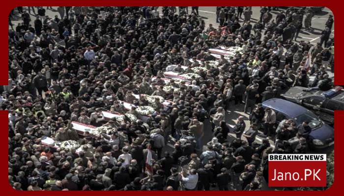 لبنان،اسرائیلی حملے میں شہید اہلکاروں کی اجتماعی نماز جنازہ میں سرکاری حکام اورشہریوں کی بڑی تعداد کی شرکت