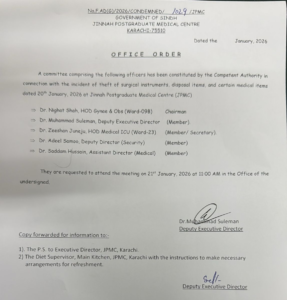 ایگزیکٹیو ڈائریکٹر نےادویات چوری کی تحقیقات کیلئے5رکنی کمیٹی تشکیل دیدی