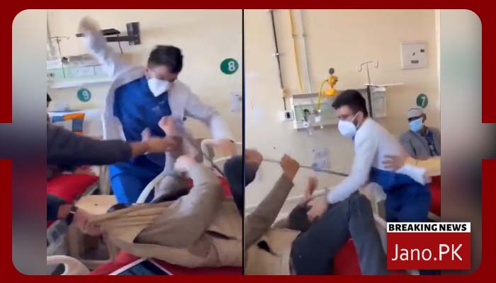 ویڈیو میں ڈاکٹر کو بیڈ پر لیٹے مریض کو تھپڑ اور مکے مارتا دیکھا جاسکتا ہے۔ اس دوران مریض نے بھی مزاحمت کی۔
