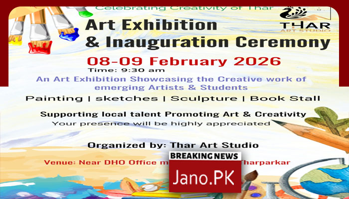 ڈی ایچ او آفس کے قریب یہ نمائش 8 اور 9 فروری کو منعقد ہوگی، جس کا مقصد تھر کے باصلاحیت فنکاروں کو اپنے فن کے اظہار کا موقع فراہم کرنا ہے۔ اس نمائش میں تھر کے تمام باصلاحیت آرٹسٹوں کو اپنے فن پارے پیش کرنے کی دعوت دی گئی ہے۔