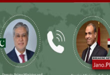 اسلام آباد(جانوڈاٹ پی کے)نائب وزیراعظم اور وزیرخارجہ اسحاق ڈار نےمصر کے وزیرخارجہ کو ٹیلی فون کرکے خطے کی صورتحال اور امن کوششوں میں پیشرفت پر تبادلہ خیال کیا۔ترجمان دفترخارجہ کےجاری…