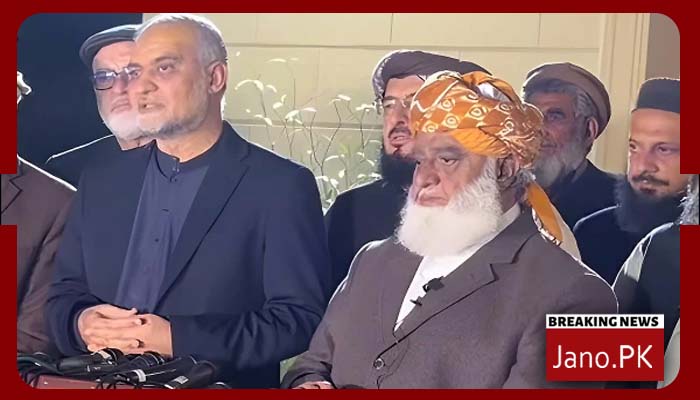 اسلام آباد(جانوڈاٹ پی کے)جمعیت علمائے اسلام پاکستان کے سربراہ مولانا فضل الرحمان نے جماعت اسلامی پاکستان کے امیر حافظ نعیم الرحمان کے ہمراہ میڈیا سے گفتگو میں کہا ہے کہ عیدالفطر کے بعد پورے ملک میں عوامی مہم چلائی جائے گی۔