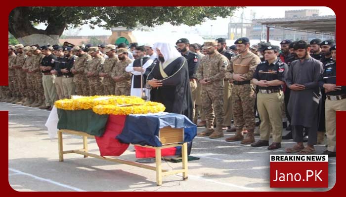 اس موقع پر پولیس کے چاک و چوبند دستے نے شہید کے جسدخاکی کو سلامی پیش کی جبکہ اعلیٰ حکام نے پھولوں کی چادریں چڑھائیں اور فاتحہ خوانی کی۔