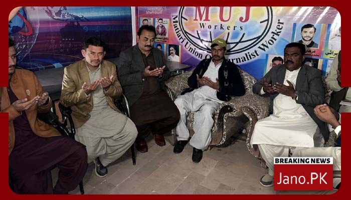 مٹیاری (رپورٹ:امجد راجپوت)پاکستان فیڈرل یونین آف جرنلسٹس ورکر کے بانی مرحوم پرویز شوکت کی برسی کے موقع پر پاکستان فیڈرل یونین آف جرنلسٹس ورکر کی ھالا آفس میں ضلع مٹیاری کے صدر عبدالغفور میمن کی سربراہی میں مرحوم کی مغفرت کے لیے ایک تعزیتی اجلاس بلایا گیا جس میں مرحوم شوکت پرویز کے ایصال ثواب کے لیے فاتحہ خوانی کی گئی اس موقع پر پاکستان فیڈرل یونین آف جرنلسٹس ورکر مٹیاری کے چیئرمین قاسم قمبرانی ۔جنرل سکریٹری محمد دین بلوچ۔نائب صدر اشفاق بلیدی ۔خزانچی قاسم پلال۔آفس سیکرٹری امجد راجپوت۔ واحد جان مری ۔سہیل بھیو۔فرحان شیخ۔عبدالغفور ملاح ۔نثار شہوک ۔عقیل بھنبھرو۔شریف سولنگی ۔رانا شمشاد ۔علی رضا ۔ میمبر شوکت سنگرا۔ نعیم قریشی ۔ارشاد خاصخیلی ۔وجاھت سومرو ۔جاوید سنائی ۔نثار لغاری ۔عامر پاریچو ۔اعجاز بگھیو۔ موجود تھے