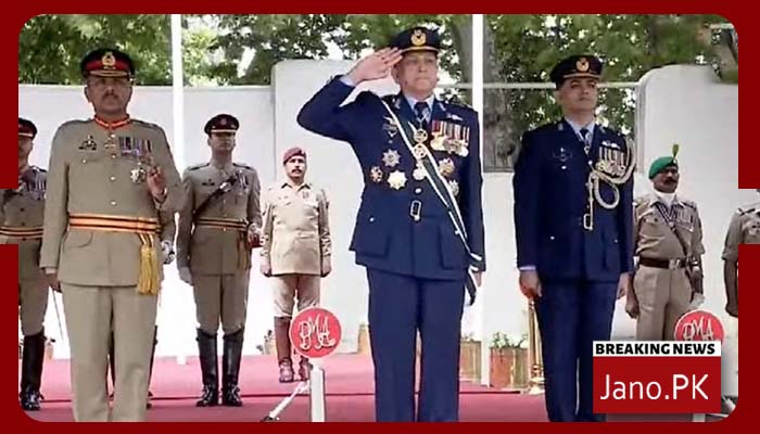 پاکستان ملٹری اکیڈمی کاکول میں 153 ویں پی ایم اے لانگ کورس اور 38 ویں ٹیکنیکل گریجوایٹ کورس کی پاسنگ آؤٹ تقریب کے مہمان خصوصی ایئر چیف مارشل ظہیر احمد بابر نے چاق و چوبند دستوں کی پریڈ کا معائنہ کیا۔