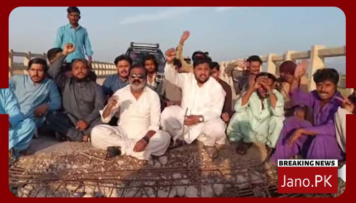 ماتلی: ٹنڈو غلام علی بائی پاس پر ٹوٹا پل تعمیر نہ ہونے پر شہریوں کا احتجاجی دھرنا
