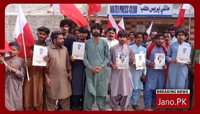 ماتلی(رپورٹ ذیشان احمد گدی/جانو ڈاٹ پی کے) ماتلی میں قومی کارکنوں اور شہریوں نے ایس یو پی تعلقہ ماتلی کے صدر آزاد ارسلان خاصخیلی، ان کے بھائی اور چچا کی گرفتاری کے خلاف پُرامن احتجاج کیا اور پريس کلب کے سامنے ریلی نکالی۔ ریلی المصطفیٰ چوک سے شروع ہوئی اور مظاہرین نے نعرے بازی کرتے ہوئے پريس کلب پہنچ کر پولیس کے خلاف احتجاج کیا۔ اس موقع پر ایس یو پی کے رہنما رب ڈنو چانگ، حمید لغاری، میر شاہد ٹالپر اور دیگر نے خطاب کرتے ہوئے کہا کہ ماتلی پولیس نے بغیر کسی جواز کے آزاد ارسلان خاصخیلی، ان کے بھائی شان اور چچا نثار خاصخیلی کو گرفتار کیا اور ان پر تشدد کیا۔ پولیس نے ان پر جھوٹے مقدمات درج کر کے انہیں جیل بھیج دیا۔ رہنماؤں نے کہا کہ ارسلان خاصخیلی ایک تعلیم یافتہ اور باصلاحیت قومی کارکن ہیں جو ماتلی اور گرد و نواح میں منشیات کی فروخت اور غیر قانونی سرگرمیوں کے خلاف آواز بلند کرتے رہے ہیں، اسی وجہ سے انہیں ہدف بنایا گیا۔ گرفتاری کے بعد قومی کارکنوں اور شہریوں میں تشویش پھیل گئی ہے۔ رہنماؤں نے خبردار کیا کہ اگر ارسلان خاصخیلی اور دیگر کے خلاف درج جھوٹے مقدمات ختم نہ کیے گئے تو پورے ضلعی سطح پر احتجاجی تحریک چلائی جائے گی۔