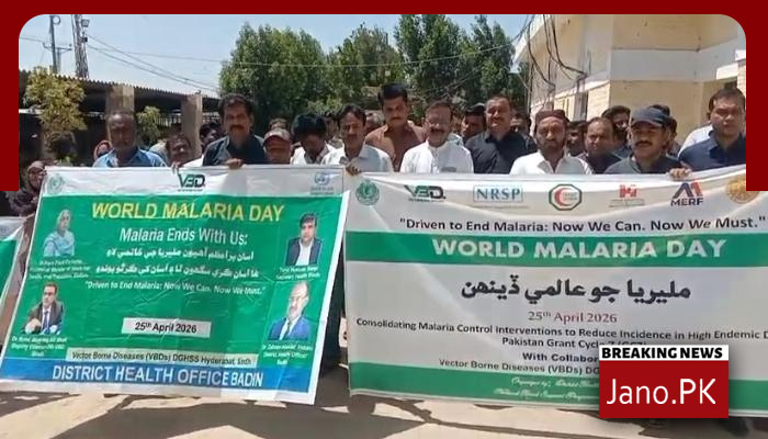 بدین،ضلع ہیلتھ آفیسر ڈاکڑ ظہور احمد عباسی کی قیادت میں ریلی ملیریا ڈے پرریلی