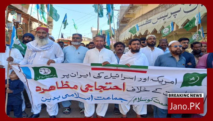 بدین(رپورٹ مرتضیٰ میمن/جانو ڈاٹ پی کے)امیرِ جماعتِ اسلامی حافظ نعیم الرحمٰن کی اپیل پر ایران پر اسرائیلی حملے کے خلاف احتجاجی مظاہرہ کیا گیا۔ مظاہرے کی قیادت جماعت اسلامی ضلع بدین کے قائم مقام امیر ضلع الله بچايو ہالیپوٹہ نے کی اس مظاہرے کا مقصد ایران پر اسرائیل اور امریکہ کے مبینہ حملے کی شدید مذمت کرنا تھا۔ مظاہرین نے اس کارروائی کو عالمی قوانین اور انسانی حقوق کی کھلی خلاف ورزی قرار دیا مظاہرے کے شرکاء نے ایران کے رہبرِ اعلیٰ آیت اللہ علی خامنہ ای کو خراجِ تحسین پیش کیا اور کہا کہ وہ ان رہنماؤں میں شامل ہیں جو امریکہ اور اسرائیل کے سامنے ڈٹ کر کھڑے ہوتے ہیں اور کسی دباؤ کے آگے جھکنے کے لیے تیار نہیں۔ اللہ بچایو ہالیپوٹہ نے یہ بھی کہا کہ امریکہ خود کو انسانی حقوق کا علمبردار قرار دیتا ہے، مگر ایران پر حملہ کر کے اس نے بین الاقوامی قوانین اور انسانی حقوق کی پامالی کی ہے، جس کی ہم بھرپور مذمت کرتے ہیں۔