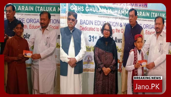 بدین: گورنمنٹ بوائز ہائی اسکول غلام محمد آرائیں میں 31ویں سالانہ ایوارڈ و اسکالرشپ تقریب،طلبہ میں انعامات تقسیم