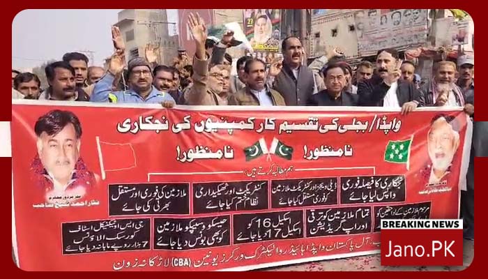 لاڑکانہ، بجلی کی تقسیم کار کمپنیوں کی نجکاری کے خلاف سیپکو ملازمین کی احتجاجی ریلی