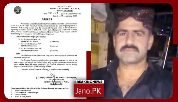 لارکانہ:مبینہ پولیس مقابلہ میں علی گل کلہوڑو کے قتل پر آئی جی سندھ کا نوٹس،فائرنگ کرنیوالا اہلکار گرفتار،3رکنی انکوائری کمیٹی تشکیل