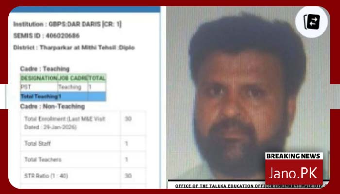تھرپارکر کے محکمہ تعلیم کی بدانتظامی،2 سال سے غیر حاضر استاد کیخلاف کوئی کارروائی نہ ہو سکی