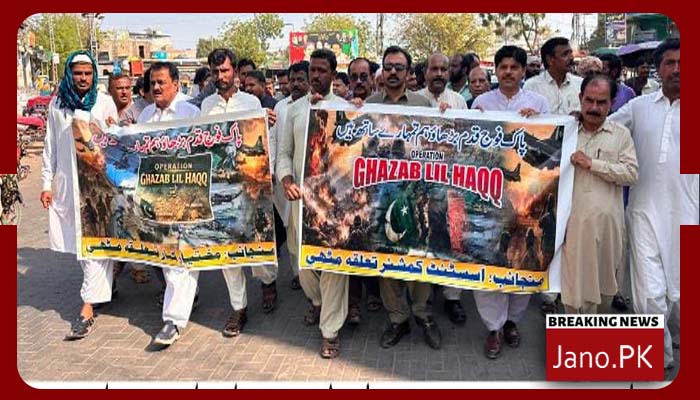 تھرپارکر (رپورٹ : میندھرو کاجھروی/ جانو ڈاٹ پی کے)ڈپٹی کمشنر تھرپارکرعبدالحلیم جاگیرانی کی ہدایت پر اسسٹنٹ کمشنر مٹھی عمیر اشرف کی زیر قیادت پاک فوج سے یکجہتی اور آپریشن "غضب للحق” کی حمایت میں میونسپل کمیٹی مٹھی سے کشمیر چوک مٹھی تک "پاکستان زندہ باد” ریلی نکالی گئی۔