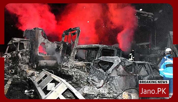 ٹوکیو (مانیٹرنگ ڈیسک) جاپان میں ہونے والے خطرناک حادثے میں 56 گاڑیاں آپس میں ٹکرا گئیں، کئی گاڑیوں میں آگ لگ گئی جس سے ایک خاتون ہلاک اور 26 افراد زخمی ہوگئے۔