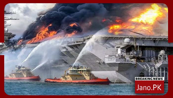 عالمی خبر رساں ادارے کے مطابق امریکی بحری جہاز میں لگنے والی آگ میں دو اہلکار بری طرح جھلس کر زخمی ہوگئے۔ جنھیں اسپتال منتقل کردیا گیا۔