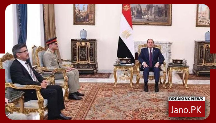 آئی ایس پی آر کے مطابق یہ ملاقات قاہرہ کے اتحادیہ صدارتی محل میں ہوئی، جس کے دوران دونوں رہنماؤں نے پاکستان اور مصر کے درمیان دیرینہ برادرانہ تعلقات کو مزید مضبوط بنانے کے عزم کا اظہار کیا۔